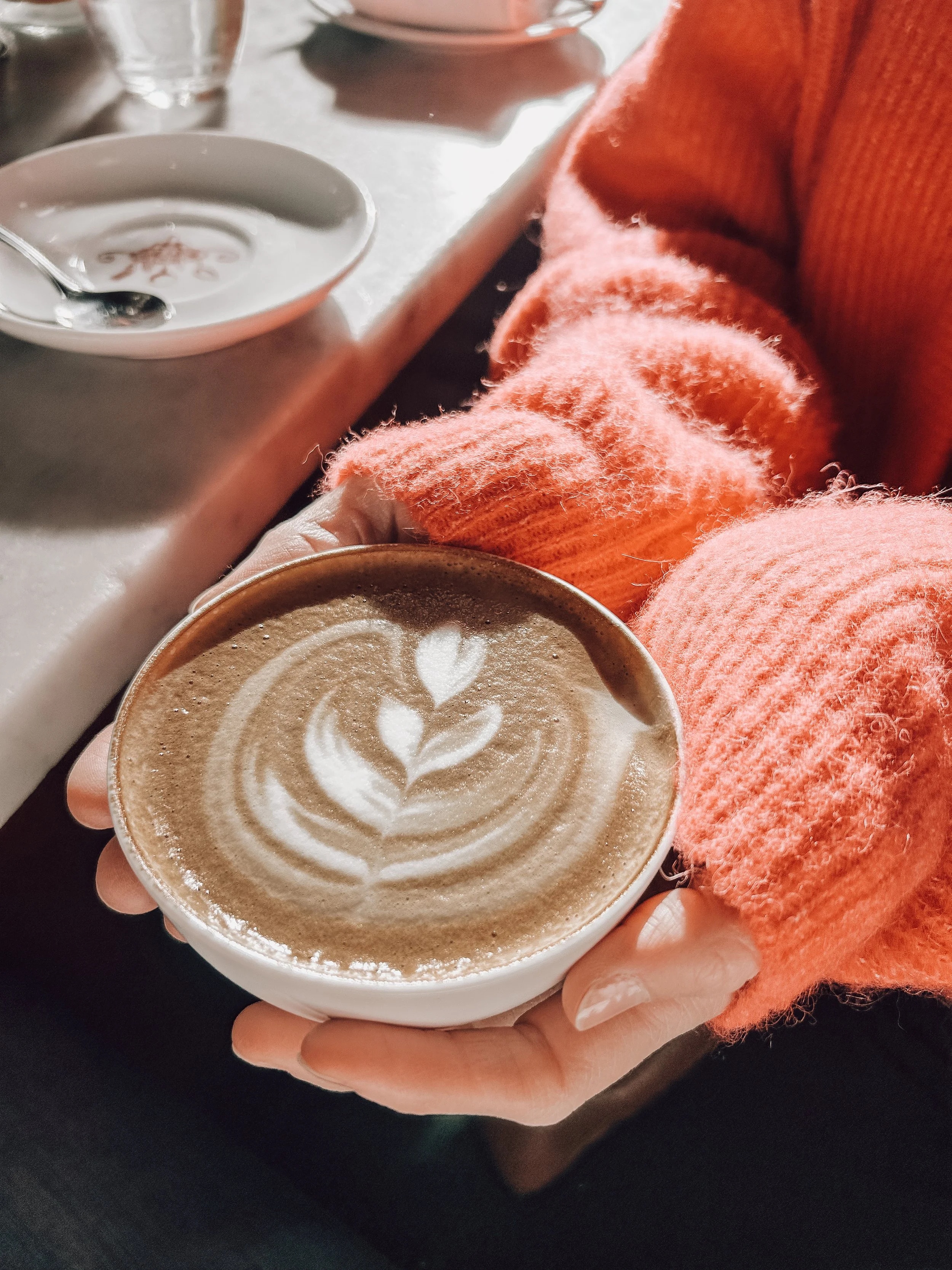 We sit down, and I pour you a warm cup of dark roasted coffee or herbal tea. And there is no rush.
